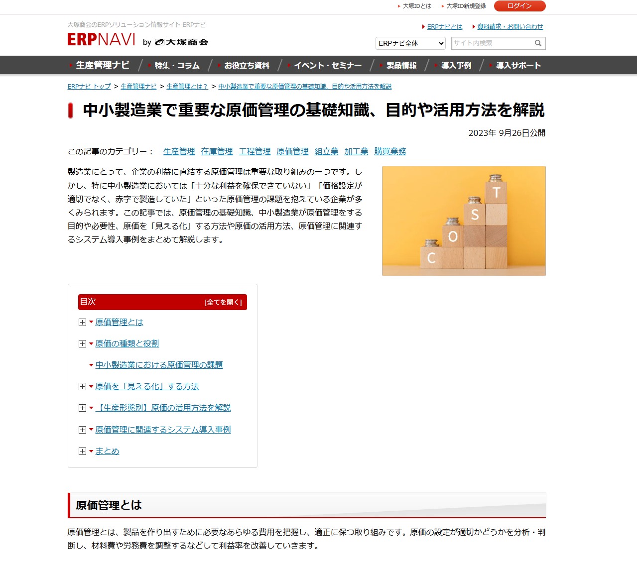 2023年7月に生産管理コンジェルジュの酒田裕之が講師を務めた原価管理セミナーの内容が、記事として大塚商会サイトに公開されました。